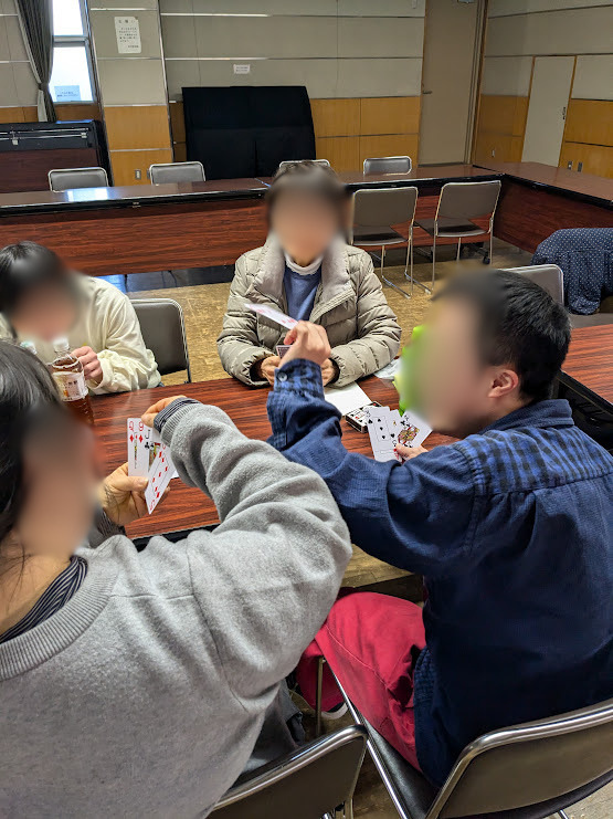 好きな飲み物やおやつをいただきながら、仕事やグループホーム生活、お酒のことなど、普段なかなかゆっくりとした時間が持てない本人同士が向き合って話をし、ゲームやトランプもして楽しい時間となりました。
